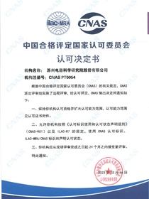 • 中國合格評定國家認(rèn)可委員會認(rèn)可決定書(CNAS PT0054)
