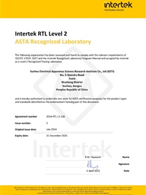 • ASTA證書
