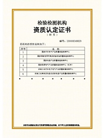 • 機械工業(yè)汽車電子電氣產(chǎn)品質(zhì)量監(jiān)督檢測中心機構(gòu)認(rèn)定-資質(zhì)證書