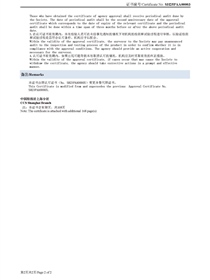 • 中國船級社產(chǎn)品檢測和試驗機構(gòu)認(rèn)可證書(電器產(chǎn)品)反面
